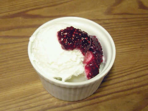 鍋に残っていたラズベリーのジャムでラズベリーアイスを作ってみました